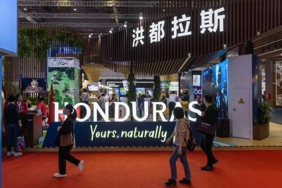 11月7日在進(jìn)博會(huì)國家館拍攝的洪都拉斯展臺(tái)。新華社記者 王翔 攝
