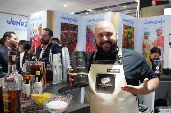 11月7日,展商在第六屆進(jìn)博會(huì)國家展委內(nèi)瑞拉展臺(tái)展示朗姆酒。新華社記者 李夢(mèng)嬌 攝