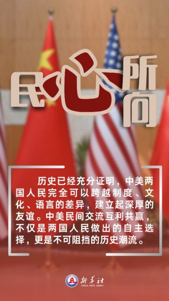 中美都應(yīng)該本著對(duì)兩國人民負(fù)責(zé)任的態(tài)度,從兩國人民的福祉出發(fā),處理好、管控好、發(fā)展好兩國關(guān)系,為兩國人民繼承和弘揚(yáng)珍貴友誼遺產(chǎn)創(chuàng)造有利氛圍和條件,筑牢兩國友誼與合作的民意基礎(chǔ)。近期中美關(guān)系“大氣候”回暖,越來越多的中美各界人士為兩國擴(kuò)大交往合作鼓與呼,為兩國人民相知相親四處奔走,傳遞出中美民間友好的積極信息。