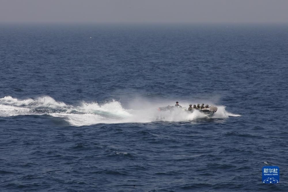 中巴“海洋衛(wèi)士-3”海上聯(lián)合演習(xí)在阿拉伯海北部??沼蚺e行,中國(guó)海軍荊州艦特戰(zhàn)隊(duì)員在臨檢拿捕演練中乘小艇前出(11月14日攝)。新華社發(fā)(姜霞攝)