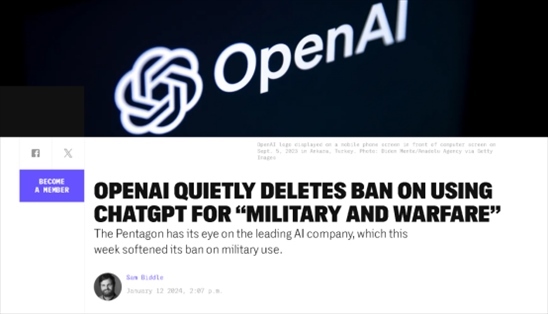 “攔截者”網(wǎng)站還特別提到,雖然OpenAI公司的產(chǎn)品、模型和服務(wù)如今還沒有被用于操控武器去殺人,但實(shí)際上其技術(shù)已經(jīng)開始被軍方用于編寫代碼、處理武器采購以及情報(bào)分析等方面。換言之,盡管沒有被直接用于殺人,該公司的技術(shù)都已經(jīng)在被用于協(xié)助這樣的工作了。