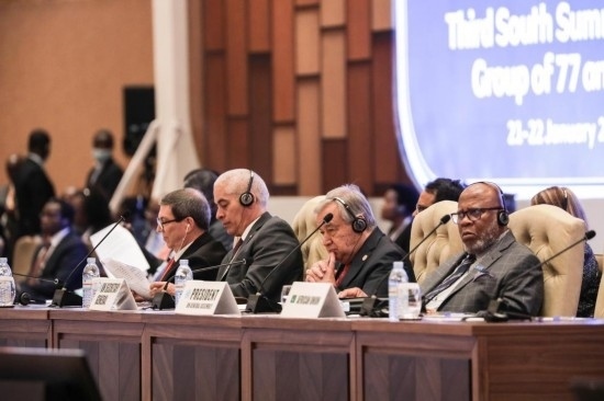 1月21日,聯(lián)合國秘書長古特雷斯(右二)參加在烏干達(dá)首都坎帕拉舉行的“77國集團和中國”第三屆南方首腦會議。 新華社發(fā)(阿佳拉·納瓦達(dá)攝)