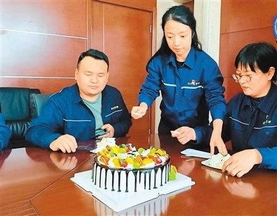 中哈(連云港)物流合作基地人員為馬合江(左一)過(guò)生日。蘇立洋攝