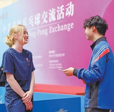 在中美建交45周年之際,北京市人民對外友好協(xié)會邀請美國弗吉尼亞大學(xué)代表團訪問北京,并聯(lián)合北京市體育局共同舉辦以“重走乒乓路·一起向未來”為主題的中美青年乒乓球交流活動。在清華大學(xué)舉行的這場乒乓球友誼賽,便是此次交流活動的主要內(nèi)容之一。盡管是臨時組隊,但乒乓球迅速化解了兩國大學(xué)生初次見面的拘謹,讓他們很快熟絡(luò)起來,整場比賽也在輕松愉快的氛圍中順利結(jié)束。賽后,兩國大學(xué)生又聚在一起自拍留念,互留聯(lián)系方式。