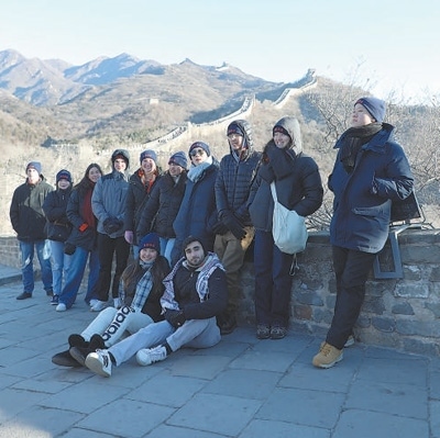 1月7日,弗吉尼亞大學(xué)代表團成員在八達嶺長城合影留念。本報記者 趙益普攝
