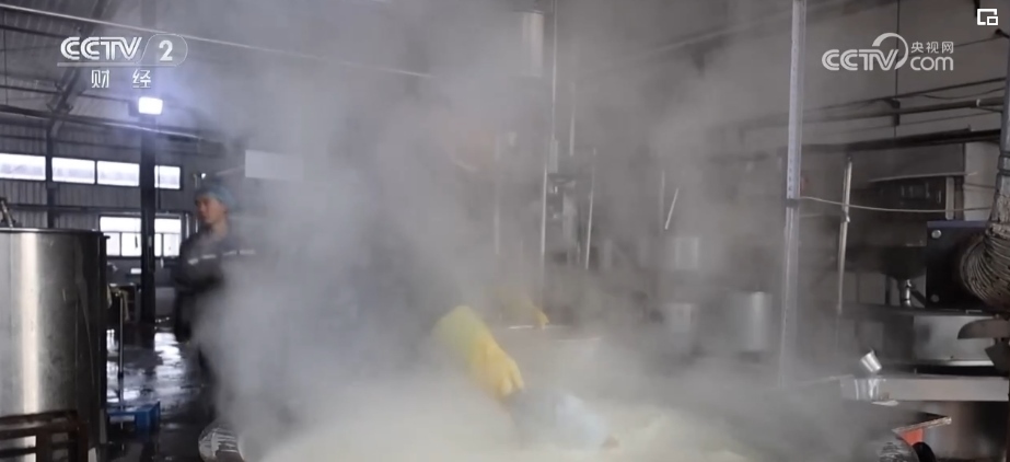 這兩天,在山西黎城縣的豆腐制作工坊里,工作人員忙碌地制作手工豆腐,豆香四溢,充滿了濃濃的年味兒。