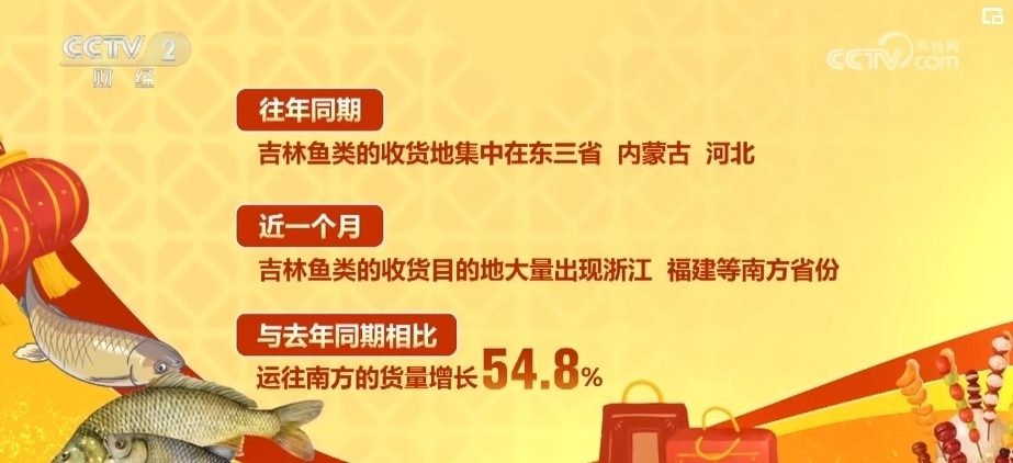 南方水果運往北方的同時,北方的堅果、水產和鮮奶運送到了南方。從訂單數(shù)據(jù)看,吉林魚類的收貨地在往年都集中在東三省、內蒙古、河北。然而在最近一個月,收貨的目的地大量出現(xiàn)了浙江、福建等南方省份,跟2023年同期相比,運往南方的貨量增長了54.8%。