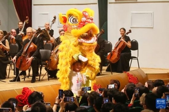 2024“溫暖迎春·共慶中國年”白俄羅斯華僑華人新春交響音樂會2日晚在白俄羅斯國家音樂廳舉辦。音樂會以中國傳統(tǒng)舞龍舞獅表演開場,中白兩國音樂家聯(lián)袂為觀眾奉獻(xiàn)了《春節(jié)序曲》《庫里安協(xié)奏曲》等經(jīng)典曲目。