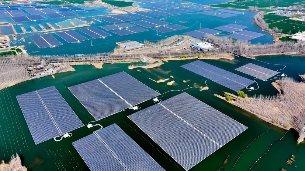 ?這是山東省濟寧市微山縣驩城鎮(zhèn)利用采煤塌陷區(qū)約3600畝水面建設(shè)的漁光互補項目(2024年3月20日攝,無人機照片)。該項目集光伏發(fā)電、漁業(yè)養(yǎng)殖、生態(tài)修復于一體。新華社記者郭緒雷攝