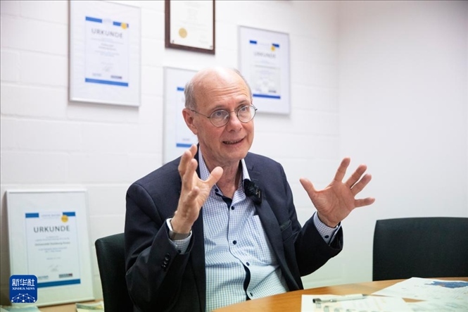 ?3月27日,德國杜伊斯堡-埃森大學交通與物流系主任貝恩德·諾合在杜伊斯堡接受新華社專訪。新華社記者 張帆 攝