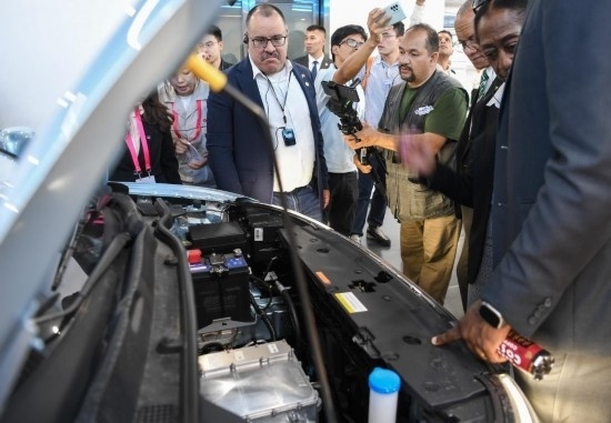 代表團(tuán)來到襄陽和武漢的多家新能源汽車上下游工廠參觀。干凈明亮的整裝車間里,機(jī)械臂上下?lián)]舞,AGV小車穿梭搬運(yùn)零配件,電子屏幕實(shí)時(shí)顯示生產(chǎn)信息。在嵐圖汽車科技有限公司,代表團(tuán)成員興致勃勃地試乘了多款新能源汽車,體驗(yàn)座椅按摩、折疊桌板、智能語音助手等功能,親身感受汽車在數(shù)秒內(nèi)從0碼提速到100碼的過程。