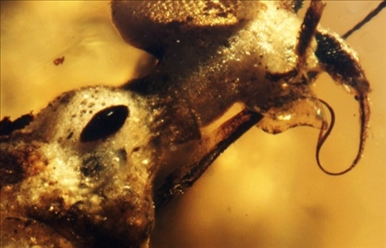 以色列特拉維夫大學(xué)斯坦哈特自然歷史博物館日前發(fā)表聲明說,該館和耶路撒冷希伯來大學(xué)開展了一項(xiàng)聯(lián)合研究,在琥珀中發(fā)現(xiàn)了一種9900萬年前的罕見昆蟲。相關(guān)研究已發(fā)表在《以色列昆蟲學(xué)雜志》上。