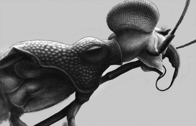 聲明說,研究人員在研究采自緬甸北部山谷一個(gè)琥珀礦的白堊紀(jì)中期化石標(biāo)本時(shí)發(fā)現(xiàn)了一種昆蟲,其眼睛尺寸異常大,體色圖案復(fù)雜,且有明顯擴(kuò)展的盾片。此外,它的翅膀上有獨(dú)立的前緣脈和亞前緣脈。研究人員認(rèn)為,這種昆蟲的顏色和獨(dú)特形狀也許可以威懾捕食者。