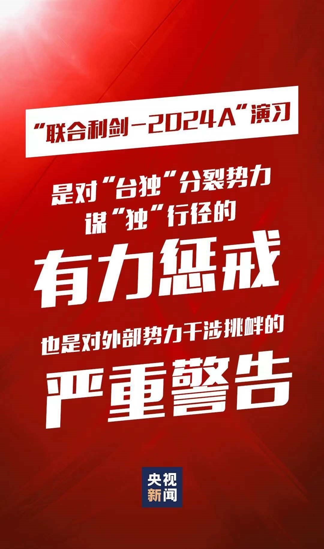 5月23日至24日,中國人民解放軍東部戰(zhàn)區(qū)組織戰(zhàn)區(qū)陸軍、海軍、空軍、火箭軍等兵力,位臺(tái)島周邊開展“聯(lián)合利劍-2024A”演習(xí),重點(diǎn)演練聯(lián)合??諔?zhàn)備警巡、聯(lián)合奪取戰(zhàn)場(chǎng)綜合控制權(quán)、聯(lián)合精打要害目標(biāo)等科目,艦機(jī)抵近臺(tái)島周邊戰(zhàn)巡,島鏈內(nèi)外一體聯(lián)動(dòng),檢驗(yàn)戰(zhàn)區(qū)部隊(duì)聯(lián)合作戰(zhàn)實(shí)戰(zhàn)能力。這是中國維護(hù)國家主權(quán)和領(lǐng)土完整的正義之舉,也是對(duì)“臺(tái)獨(dú)”分裂勢(shì)力謀“獨(dú)”行徑的有力懲戒,對(duì)外部勢(shì)力干涉挑釁的嚴(yán)重警告。