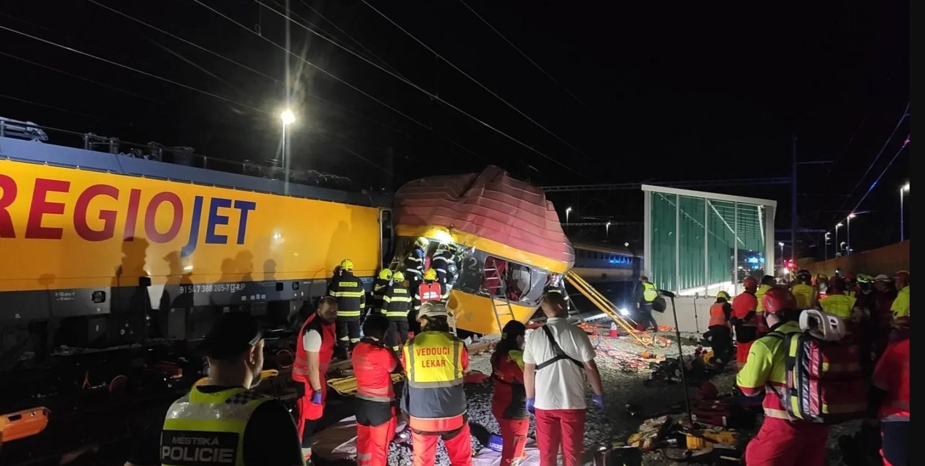 事發(fā)后,數十名警察、消防和救援人員趕赴現場。捷克“今日”新聞網站發(fā)布的現場視頻顯示,客運列車至少一節(jié)車廂脫軌側翻;警方通過社交媒體發(fā)布的圖片顯示,數輛應急服務車和一架直升機參與救援。