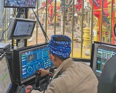 通過(guò)參與艾伯特湖區(qū)油田建設(shè),東方宏華還研發(fā)出“一鍵聯(lián)動(dòng)”舉升式排管系統(tǒng),以舉升移運(yùn)、多系統(tǒng)協(xié)同、離線作業(yè)、智能感知、一鍵集控五大技術(shù)為核心,實(shí)現(xiàn)在地面、臺(tái)面和高空三大區(qū)域的自動(dòng)化作業(yè)。“有了我們自主研發(fā)的智能系統(tǒng)加持,操作人員只需點(diǎn)擊屏幕,就可以完成接立柱和鉆井等操作?!睎|方宏華所屬宏華電氣副總經(jīng)理汪虹宇介紹。