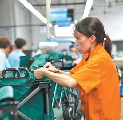60多公里外的駐馬店市平輿縣產(chǎn)業(yè)集聚區(qū)里,戶外休閑用品加工企業(yè)內(nèi)一派繁忙景象。河南泰普森休閑用品有限公司車間正緊鑼密鼓地生產(chǎn)折疊桌椅、帳篷、戶外小拉車等產(chǎn)品?!斑@些是歐洲的訂單?!惫究偨?jīng)理王小奇指著眼前正在包裝的產(chǎn)品說,“今年市場需求旺盛,訂單已經(jīng)排到年底了。我們加足馬力生產(chǎn),一條流水線的日產(chǎn)量已超過1000套?!?/P>