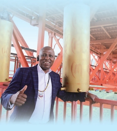 在位于安順市的壩陵河大橋,尼日利亞駐上??傤I(lǐng)事館商務(wù)專員哈桑在觀光步道中央拍照留念。