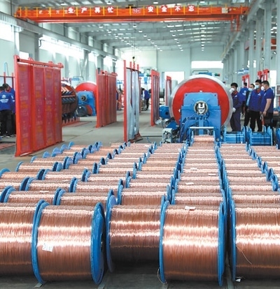 固達電線電纜(集團)有限公司二期新能源線纜車間內(nèi)整齊擺放著銅導體。以上圖片均為本報記者陳尚文攝