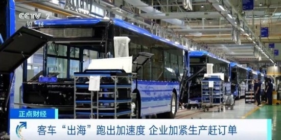 總臺央視記者 楊紫薇:在河南鄭州的一家客車生產(chǎn)企業(yè)的海外車間里,客車即將組裝下線,工人們正在進(jìn)行最后的安裝調(diào)試階段。據(jù)了解,隨著生產(chǎn)效率的提升,出口到海外的客車從原來的25天左右的生產(chǎn)周期,縮短到了現(xiàn)在的大約21天。此外,出口到海外的客車和內(nèi)銷的客車存在一定的區(qū)別,比如即將發(fā)往挪威的客車,從外觀上看,它的顏色會更加鮮明,光澤度、飽和度也會更高,車上配備的也都是電子后視鏡。