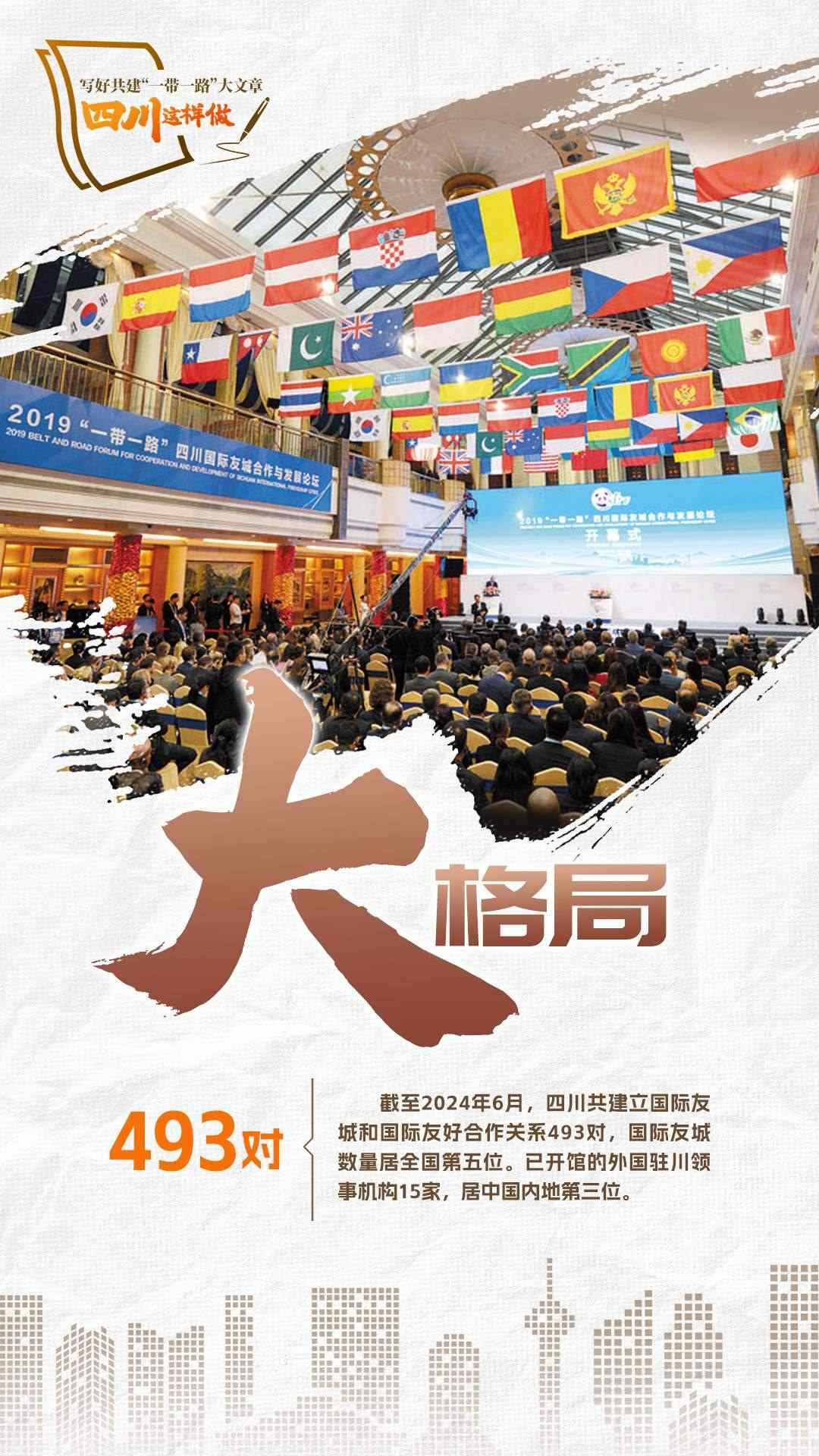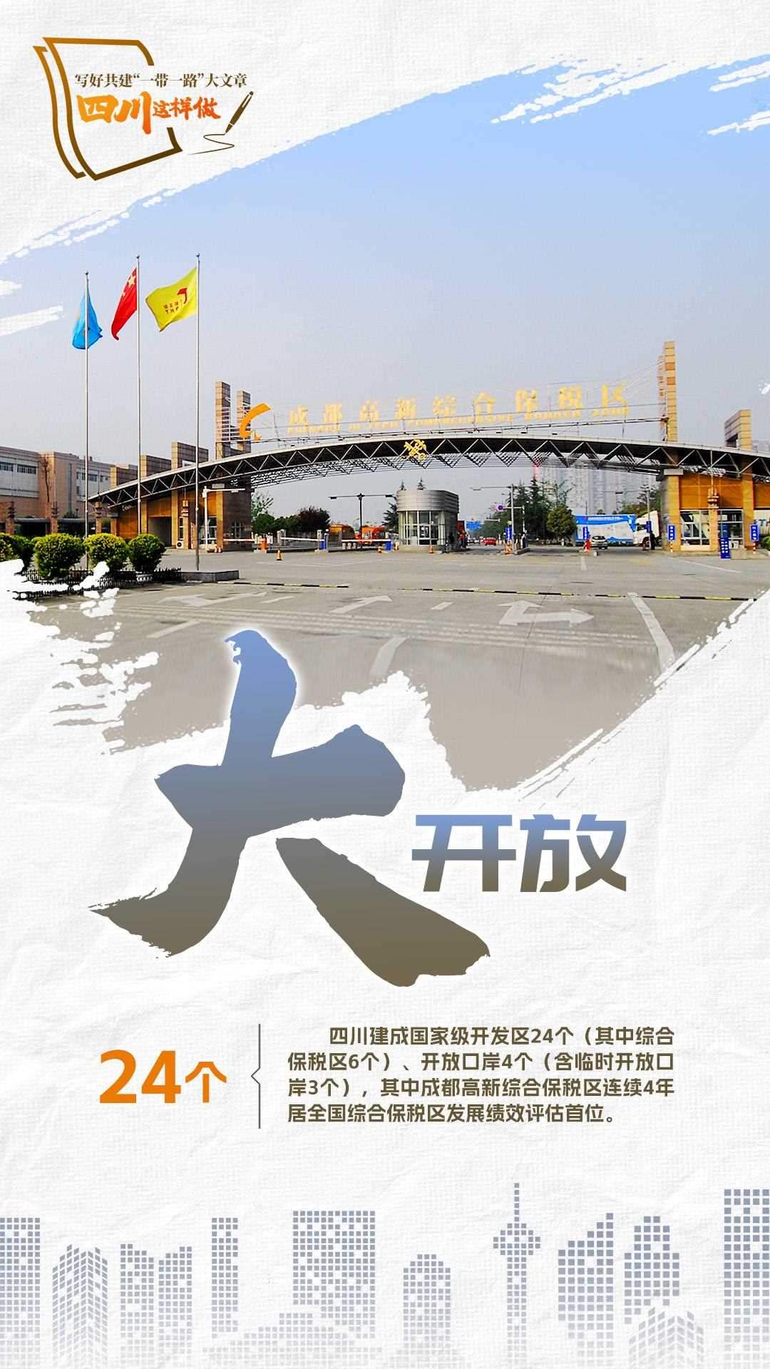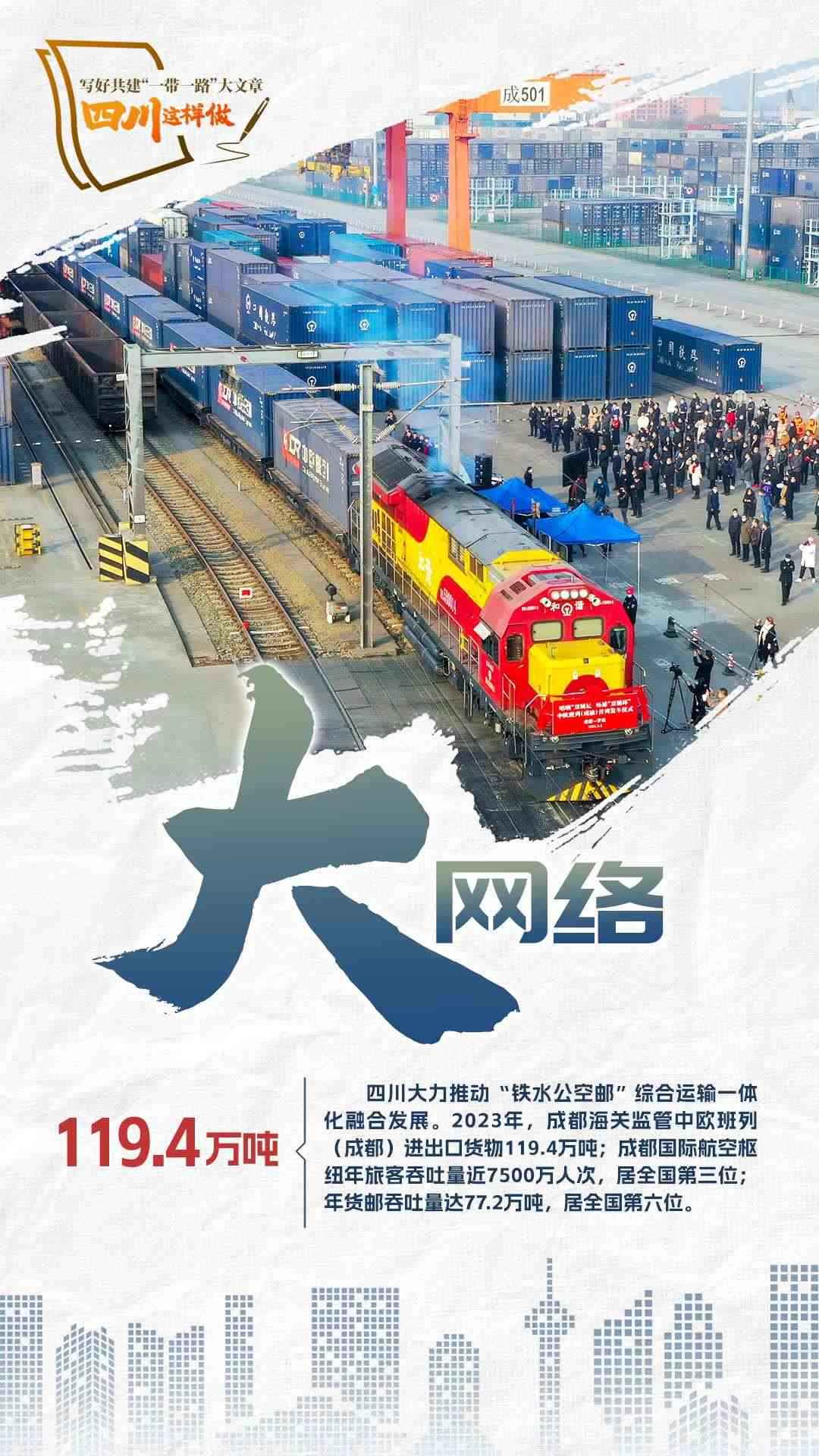 2023年,共建“一帶一路”走過第一個蓬勃十年,積極奔向更富活力的第二個“金色十年”。為推動共建“一帶一路”更高質(zhì)量、更高水平發(fā)展,宣布中國支持高質(zhì)量共建“一帶一路”的八項行動,包括構(gòu)建“一帶一路”立體互聯(lián)互通網(wǎng)絡(luò)、支持建設(shè)開放型世界經(jīng)濟、開展務(wù)實合作、促進(jìn)綠色發(fā)展、推動科技創(chuàng)新、支持民間交往、建設(shè)廉潔之路、完善“一帶一路”國際合作機制。2024年,我們將目光聚焦四川,作為內(nèi)陸開放的前沿陣地、西部大開發(fā)的戰(zhàn)略依托,看看第二個十年,四川如何寫好高質(zhì)量共建“一帶一路”大文章。