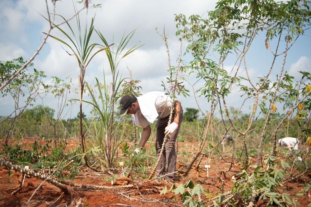 2020年3月24日,在位于海南省的中國熱帶農(nóng)業(yè)科學(xué)院的一處基地,來自埃及的副教授哈馬達(dá)·穆罕默德·哈?!ぐ⒉范爬瓍⒓又袊鵁峥圃簾釒锛夹g(shù)研究所木薯育種團(tuán)隊開展的木薯選育新技術(shù)培訓(xùn)。