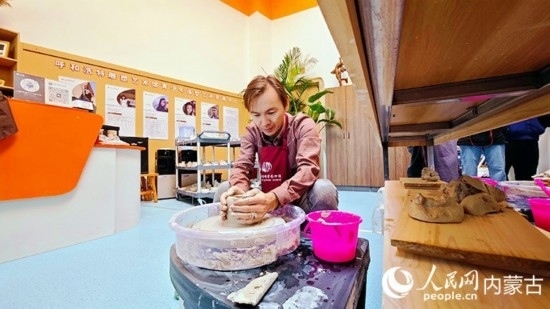 輪盤帶著陶泥緩緩旋轉,隨著指尖的輕觸,陶泥逐漸被拉高,一塊塊不起眼的泥巴變化出各樣的形態(tài)。10月22日,“一帶一路”青年友好交流項目“外媒看青城”媒體采風團在呼和浩特雕塑藝術館的美育中心進行泥塑和釉下彩體驗,一起“玩泥巴”!