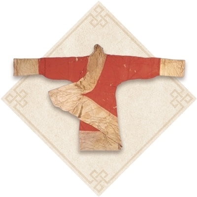 湖南長(zhǎng)沙馬王堆一號(hào)墓出土朱紅菱紋羅絲綿袍,中原曲裾樣式代表。圖為德國考古研究院提供