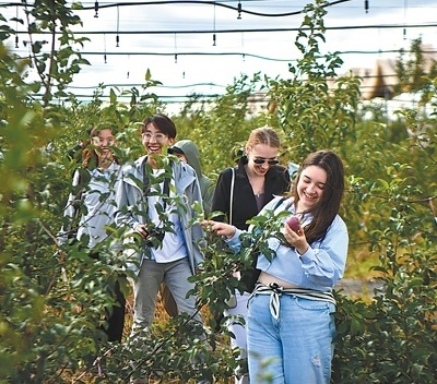 采礦不見礦,黃土披綠裝。礦山復(fù)墾區(qū)的千畝林果示范園里,一片郁郁蔥蔥的果園映入眼簾,蘋果、李子、梨、杏等果樹枝葉繁茂,果實累累。品嘗著甘甜的果實,北京石油化工學(xué)院烏茲別克斯坦留學(xué)生阿扎馬特豎起了大拇指,并用標(biāo)準(zhǔn)的中文稱贊道:“滿分!”