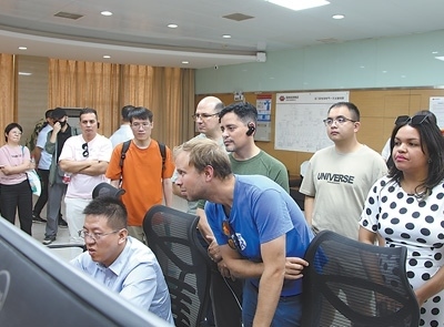 國際青年代表在玉門風(fēng)電場中控室參觀。圖為本報記者趙帥杰攝
