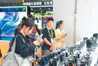 觀眾在進(jìn)博會尼康相機(jī)展臺參觀。本報(bào)記者 高 喬攝