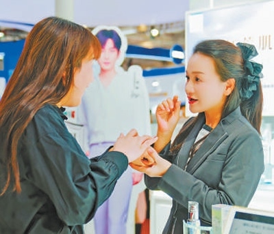 第七屆進(jìn)博會期間,參觀者在花王展臺體驗(yàn)相關(guān)產(chǎn)品。
