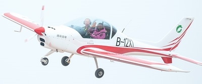 1月18日,在湖南省常德市柳葉湖龍翔低空飛行營地,游客乘坐固定翼飛機(jī)體驗飛行。