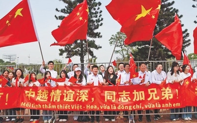“中越命運共同體推進于密切的人文交流。這些年,中越人文交流步子越邁越大,兩國民眾越走越親?!?月14日,在赴河內(nèi)對越南進行國事訪問之際,中共中央總書記、國家主席習近平在越南《人民報》發(fā)表題為《志同道合攜手前行 繼往開來續(xù)寫新篇》的署名文章,指出要共同辦好中越青年友好會見、邊民大聯(lián)歡等有溫度、接地氣、聚民心的人文交流活動,深挖紅色資源,講好兩國人民友好故事,把中越友好接力棒一代代傳下去。