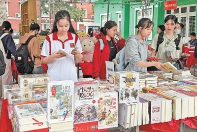 4月9日,越南河內(nèi)大學孔子學院學生在翻閱越南語版的中國傳統(tǒng)經(jīng)典名著。