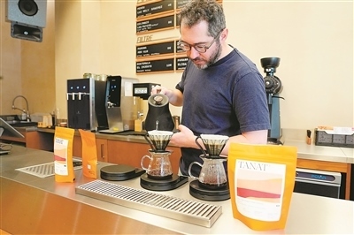 法國知名精品咖啡烘焙品牌TANAT今年推出兩款產(chǎn)自云南保山紅龍莊園的小??Х犬a(chǎn)品。該品牌首席烘焙師托馬·克萊芒表示,所選的云南咖啡豆口感柔和細(xì)膩,兼具豐富的層次與地域特色。圖為該品牌位于巴黎的一家門店內(nèi),咖啡師在沖泡云南咖啡。