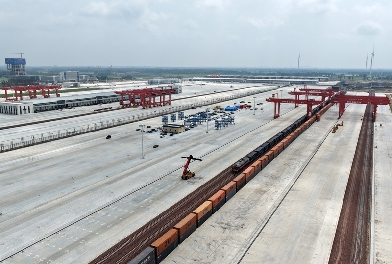 6月28日,一班列車在鄭州國際陸港核心功能區(qū)???。