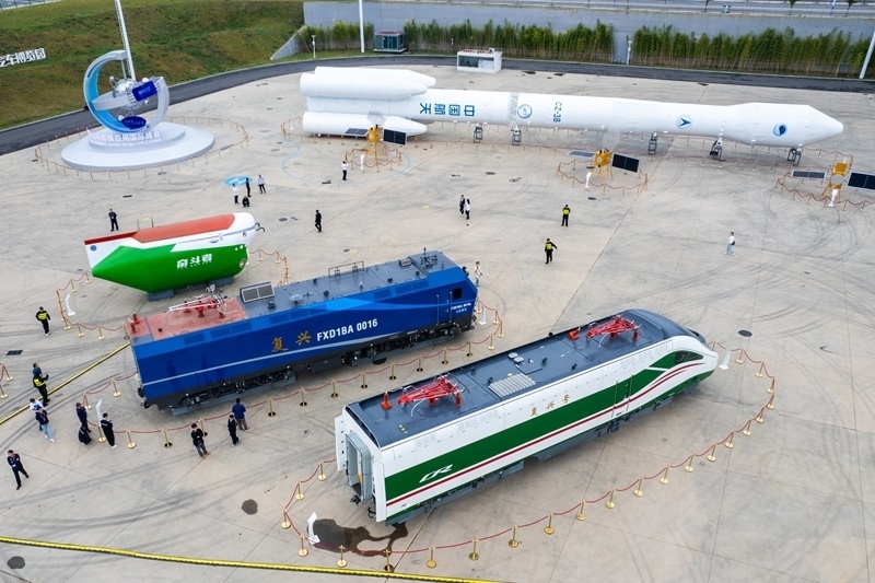 這是9月24日在株洲國際會(huì)展中心拍攝的第四屆北斗規(guī)模應(yīng)用國際峰會(huì)戶外展示區(qū)(無人機(jī)照片)。