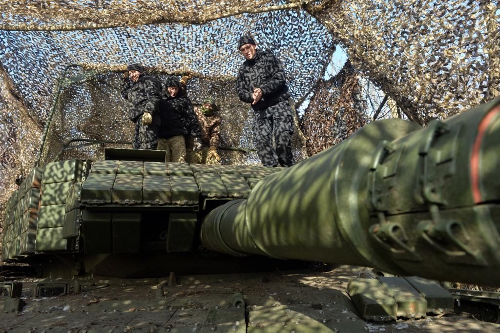 2月9日,烏軍第5獨(dú)立重型機(jī)械化旅第1坦克營(yíng)士兵在檢查坦克。新華社發(fā)(彼得·德魯克攝)