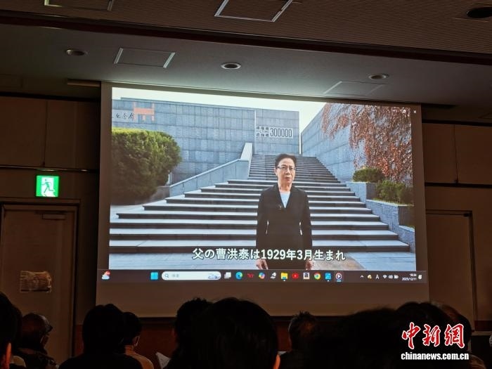 12月11日,在日本東京舉辦的南京大屠殺證言集會(huì)上,南京大屠殺幸存者后代曹玉莉以視頻方式提供證言。中新網(wǎng)記者 朱晨曦 攝