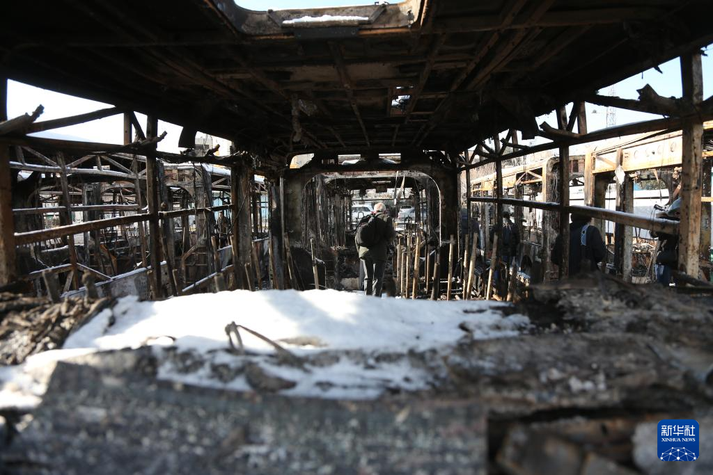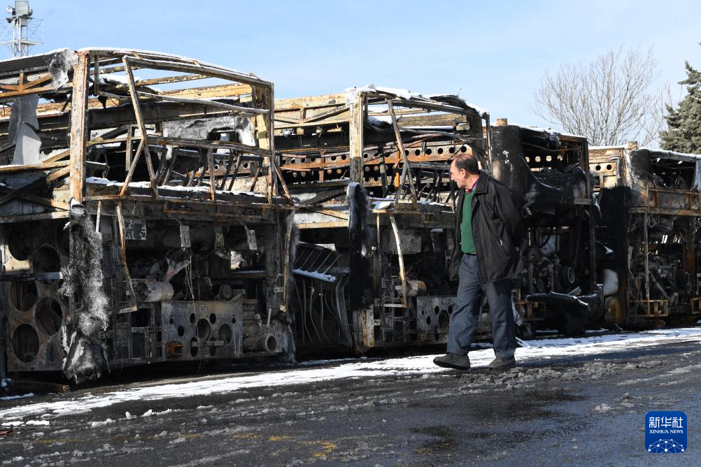 1月21日,在伊朗首都德黑蘭,一名男子走過(guò)在近期騷亂中被燒毀的公交車。新華社記者 沙達(dá)提 攝