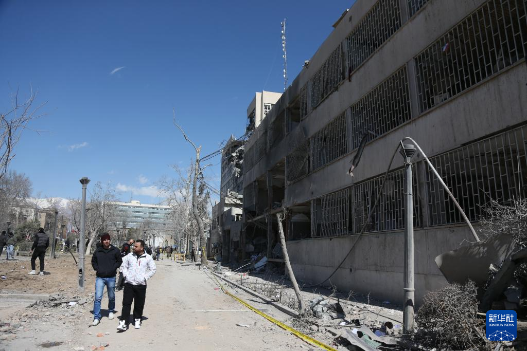 3月3日,人們走過伊朗德黑蘭一處在襲擊中受損的建筑。