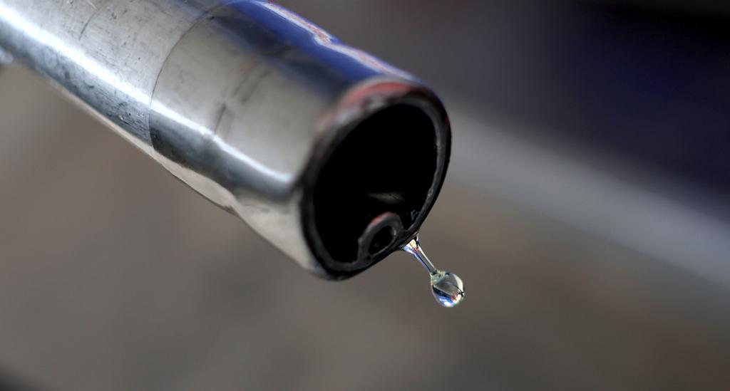 3月26日,在英國(guó)倫敦一處加油站,汽油從油槍口滴落。新華社記者李穎攝