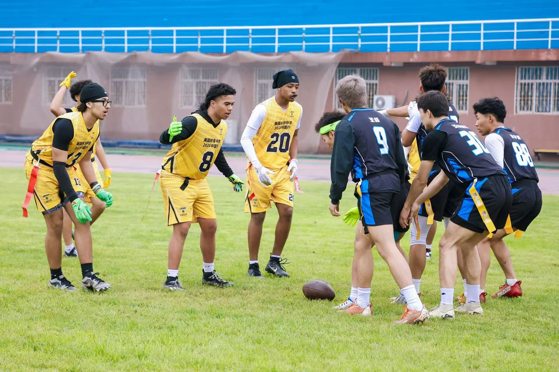 美國華盛頓州塔科馬市林肯中學(xué)腰旗橄欖球隊到訪北京首都體育學(xué)院 與該校的腰旗橄欖球社團(tuán)展開友誼賽