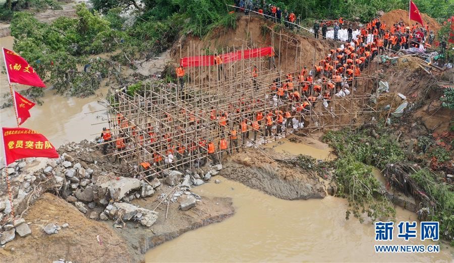 在鄱陽縣江家?guī)X村,一個排澇站突發(fā)穿孔險情??鐓^(qū)支援的上饒市信州區(qū)人武部120名民兵及時趕到,采用裝填鐵絲網(wǎng)、投放沙石袋等方法進(jìn)行封堵,連續(xù)奮戰(zhàn)9個多小時,成功排除險情。