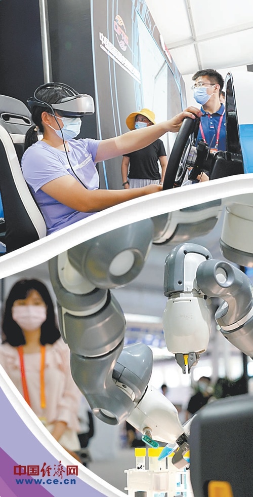 上圖:觀眾在2020服貿(mào)會5G通信服務(wù)展區(qū)體驗5G高速網(wǎng)絡(luò)帶來的仿真駕駛。下圖:觀眾在2020服貿(mào)會服務(wù)機器人展區(qū)參觀醫(yī)用機器人。經(jīng)濟日報-中國經(jīng)濟網(wǎng)記者趙晶攝