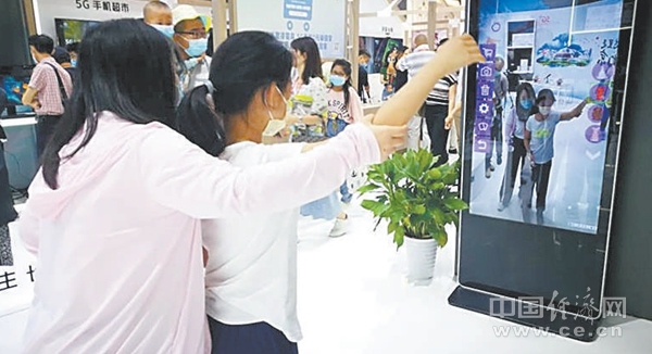 在2020服貿(mào)會5G通信服務(wù)專題展區(qū),觀眾正體驗“AR試衣鏡”。經(jīng)濟日報-中國經(jīng)濟網(wǎng)記者崔國強攝