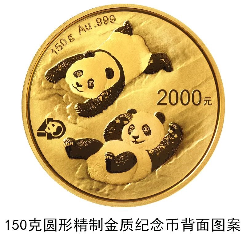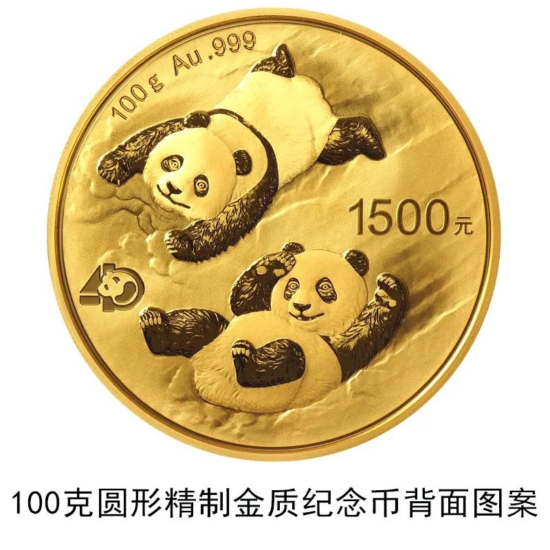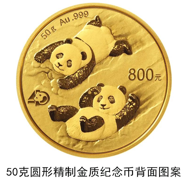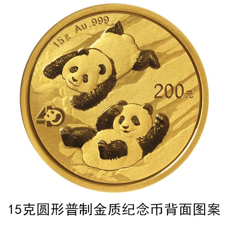 該套貴金屬紀(jì)念幣正面圖案均為北京天壇祈年殿,并刊國名、年號;背面圖案均為大熊貓滑雪嬉戲場景,輔以“熊貓金幣發(fā)行40周年標(biāo)識”元素,并刊面額、重量及成色。