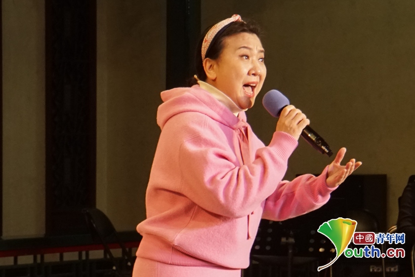 圖為在行云流水板塊,國家京劇院青年演員張書瑞演唱《三家店》選段。中國青年網記者 楊晴 攝