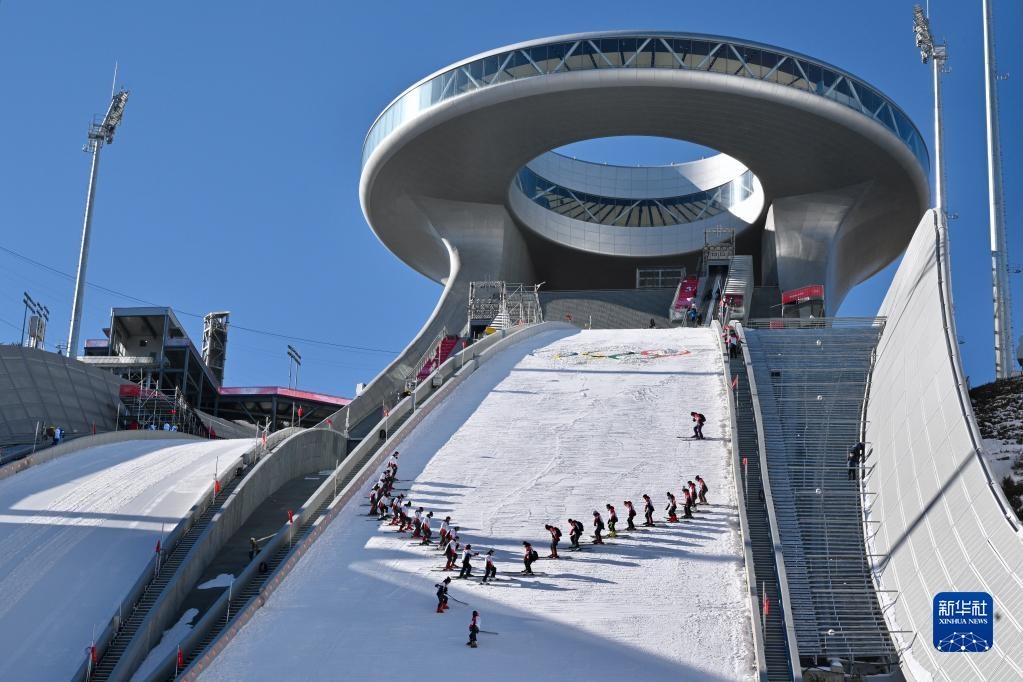 國(guó)家跳臺(tái)滑雪中心“雪如意”傲視群峰,賽道沿山體飄搖直下,北京冬奧會(huì)期間,跳臺(tái)滑雪和北歐兩項(xiàng)將在“雪如意”上演。